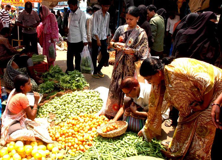 People purchase vegetables and other essentials at Madannapet Mandi during the curfew relaxation period on Wednesday - INN Photos