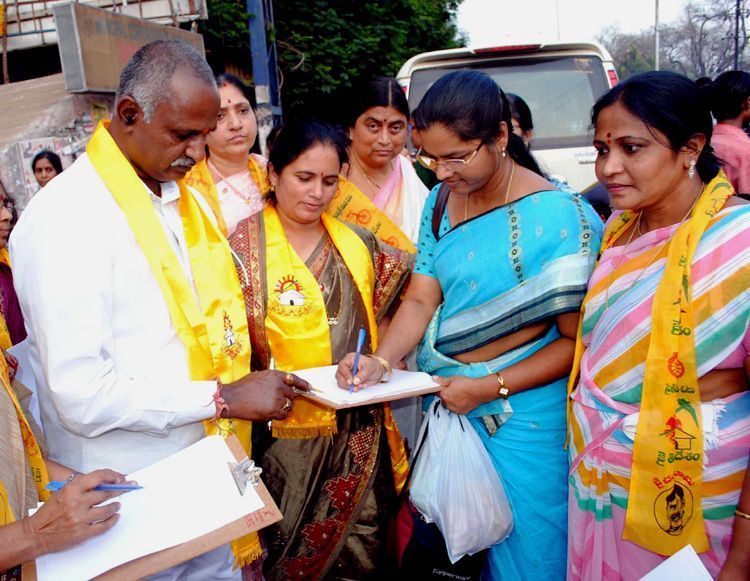 TDP Mahila wing activists take up signature campaign against liquor syndicate at Koti here on Thursday - INN Photos