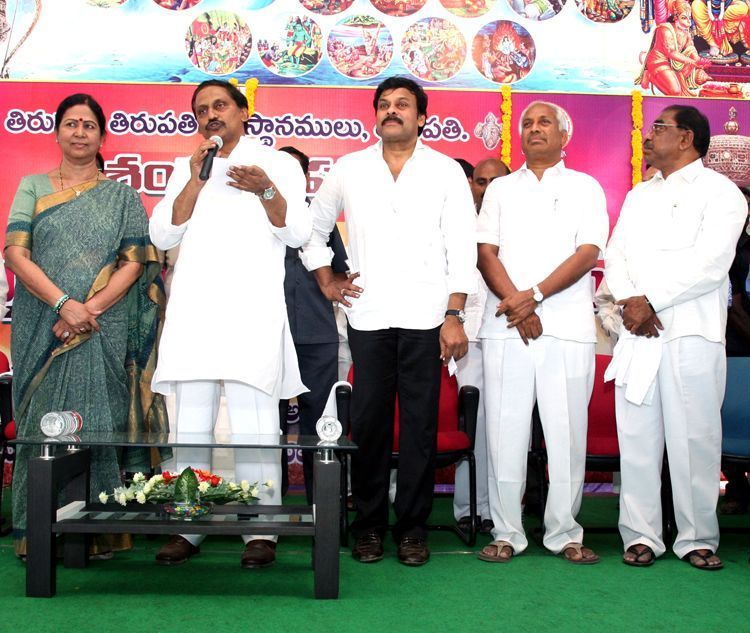 Chief Minister N.Kiran Kumar Reddy laid the foundation stone for construction of houses near Mangalam, Tirupati for displaced families of Tirumala at Srinivasam Complex in Tirupati on Sunday.