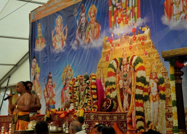 Telugu community, in huge number, turns up for Sri Srinivasa Kalyanam, performed with pomp and devotion, at Sri Guruvaayoorappan Temple in Morganville, NJ on Saturday. TTD chairman K.Bapi Raju along with chairman of Sri Guruvayoorappan Temple Mani Yegnasubramanian, PRO Dr. Prem Nandiwada took part in the event- Photos by Imam Nethrapalli
