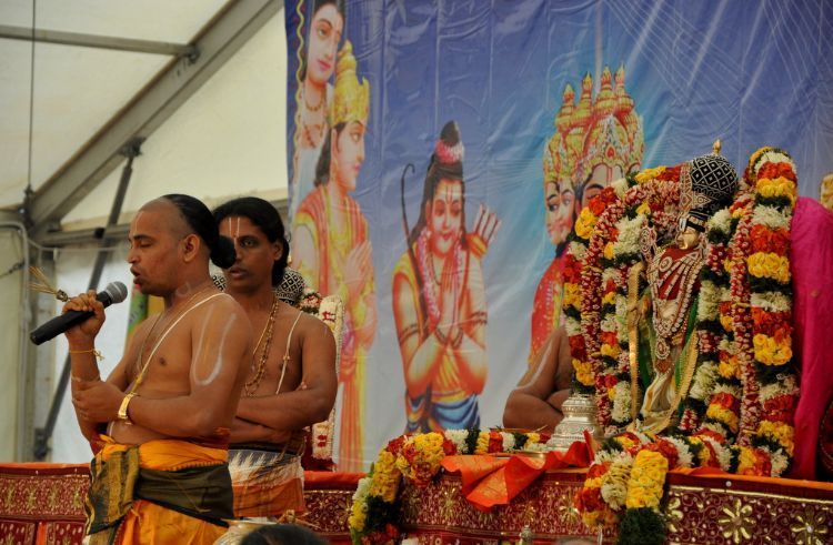 Telugu community, in huge number, turns up for Sri Srinivasa Kalyanam, performed with pomp and devotion, at Sri Guruvaayoorappan Temple in Morganville, NJ on Saturday. TTD chairman K.Bapi Raju along with chairman of Sri Guruvayoorappan Temple Mani Yegnasubramanian, PRO Dr. Prem Nandiwada took part in the event- Photos by Imam Nethrapalli