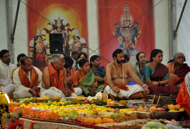 Telugu community, in huge number, turns up for Sri Srinivasa Kalyanam, performed with pomp and devotion, at Sri Guruvaayoorappan Temple in Morganville, NJ on Saturday. TTD chairman K.Bapi Raju along with chairman of Sri Guruvayoorappan Temple Mani Yegnasubramanian, PRO Dr. Prem Nandiwada took part in the event- Photos by Imam Nethrapalli