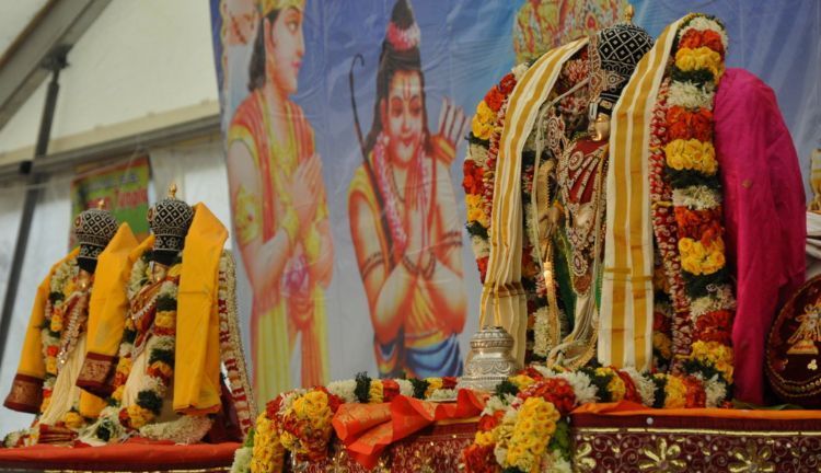 Telugu community, in huge number, turns up for Sri Srinivasa Kalyanam, performed with pomp and devotion, at Sri Guruvaayoorappan Temple in Morganville, NJ on Saturday. TTD chairman K.Bapi Raju along with chairman of Sri Guruvayoorappan Temple Mani Yegnasubramanian, PRO Dr. Prem Nandiwada took part in the event- Photos by Imam Nethrapalli