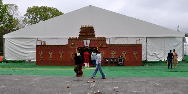 Telugu community, in huge number, turns up for Sri Srinivasa Kalyanam, performed with pomp and devotion, at Sri Guruvaayoorappan Temple in Morganville, NJ on Saturday. TTD chairman K.Bapi Raju along with chairman of Sri Guruvayoorappan Temple Mani Yegnasubramanian, PRO Dr. Prem Nandiwada took part in the event- Photos by Imam Nethrapalli