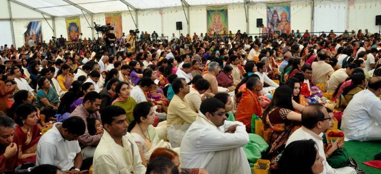 Telugu community, in huge number, turns up for Sri Srinivasa Kalyanam, performed with pomp and devotion, at Sri Guruvaayoorappan Temple in Morganville, NJ on Saturday. TTD chairman K.Bapi Raju along with chairman of Sri Guruvayoorappan Temple Mani Yegnasubramanian, PRO Dr. Prem Nandiwada took part in the event- Photos by Imam Nethrapalli