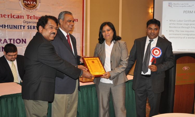 North American Telugu Association (NATA) has successfully conducted an IT Job Fair & Immigration Seminar on Sunday at Crowne Plaza Edison, Edison, NJ. The event was organized by the NATA Community Services team, led by Srinivas Ganagoni (CS Chair), Santosh Pathuri (CS Co-Chair) and Mahesh Bigala (PR Chair) under the guidance of Dr. Pailla Malla Reddy, Advisory Council member and AVN Reddy, President as part of NATA's core mission to provide community services and charitable activities. -Photos by Imam Nethrapalli