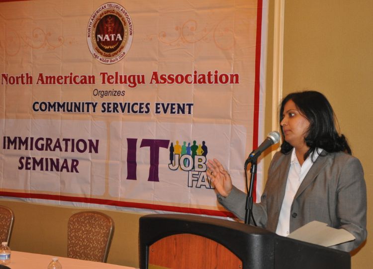 North American Telugu Association (NATA) has successfully conducted an IT Job Fair & Immigration Seminar on Sunday at Crowne Plaza Edison, Edison, NJ. The event was organized by the NATA Community Services team, led by Srinivas Ganagoni (CS Chair), Santosh Pathuri (CS Co-Chair) and Mahesh Bigala (PR Chair) under the guidance of Dr. Pailla Malla Reddy, Advisory Council member and AVN Reddy, President as part of NATA's core mission to provide community services and charitable activities. -Photos by Imam Nethrapalli