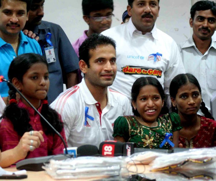 Delhi Daredevils all rounder Irfan Pathan visits Children Home for Girls at Yousufguda here on Wednesday. Delhi Daredevils head coach Eric Simmons along with another player Venugopal Rao also attended the event. - INN Photos