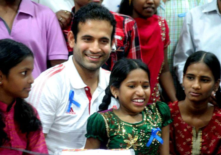 Delhi Daredevils all rounder Irfan Pathan visits Children Home for Girls at Yousufguda here on Wednesday. Delhi Daredevils head coach Eric Simmons along with another player Venugopal Rao also attended the event. - INN Photos