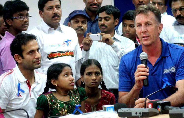 Delhi Daredevils all rounder Irfan Pathan visits Children Home for Girls at Yousufguda here on Wednesday. Delhi Daredevils head coach Eric Simmons along with another player Venugopal Rao also attended the event. - INN Photos