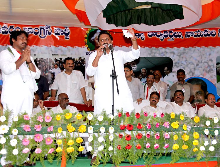 Chief Minister N.Kiran Kumar Reddy addressing an election meeting in Pedanandipadu of Guntur district on Saturday.