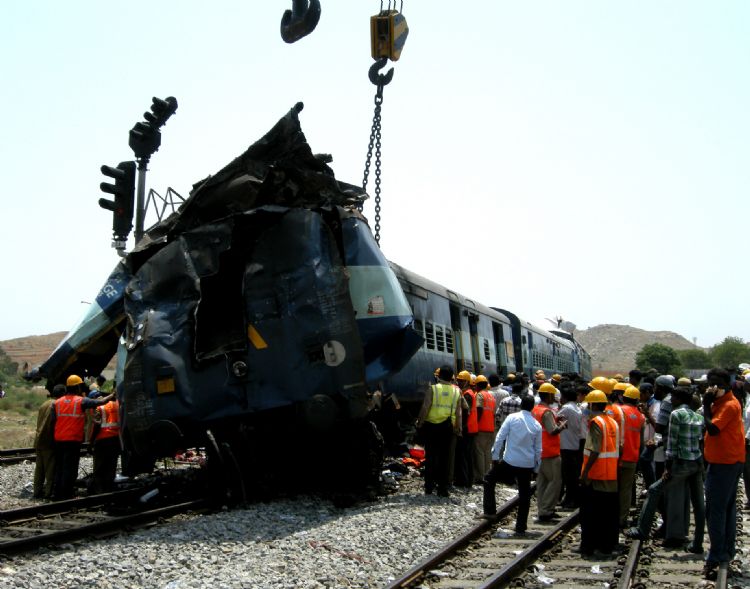 Rescue Operation: A view of the accident site near Penukonda railway station in Anantapur district where the Bangalore-bound Hampi Express rammed into a staionary goods train.