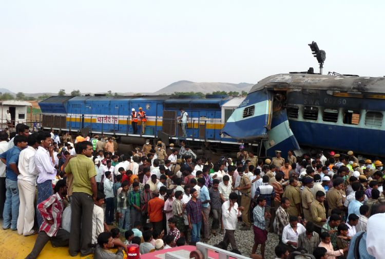 Rescue Operation: A view of the accident site near Penukonda railway station in Anantapur district where the Bangalore-bound Hampi Express rammed into a staionary goods train.