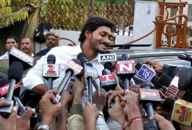 YSR Congress party chief Jagan Mohan Reddy addresses media persons as he comes out after being questioned by the CBI in Hyderabad on Saturday.