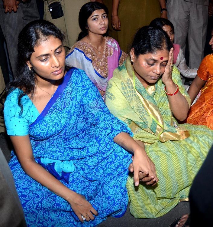 Jagan's mother YS Vijayamma, wife Bharati, sister Sharmila stages a sit in protest at Dilkusha guest house in Rajbhavan road on Sunday after CBI announced Jagan's arrest.