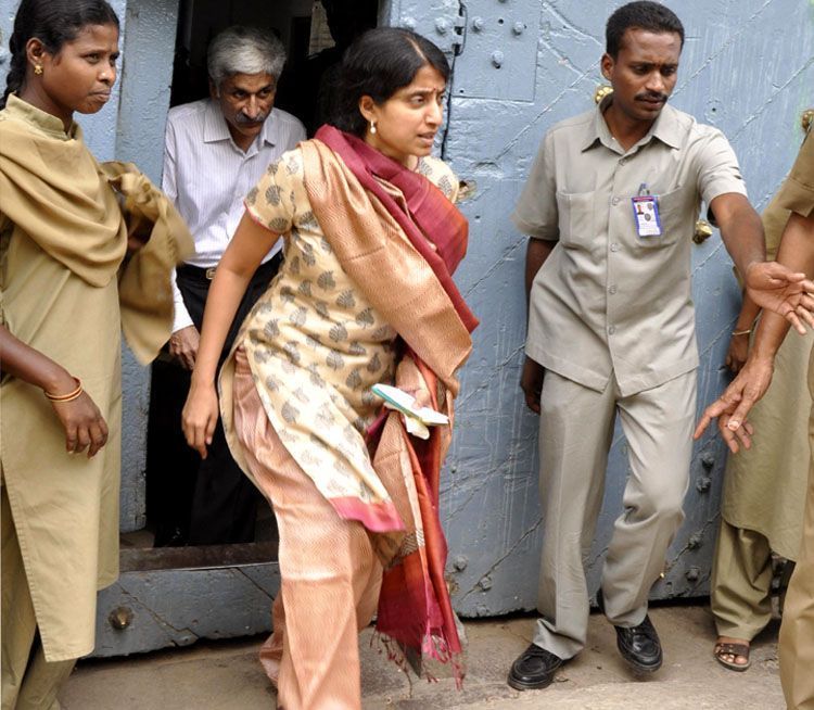 YS Jaganmohan Reddy's wife Bharati coming out of Chanchalguda Jail after meeting her husband on Tuesday. - INN Photos