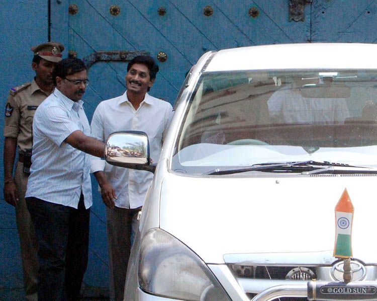 YSR Congress party president Jaganmohan Reddy coming out of Chanchalguda Central Jail here on Sunday. Later, he was shifted to a guest house in the premises of the Director General of Prisons office where CBI officials will question him for the next five days - INN Photos