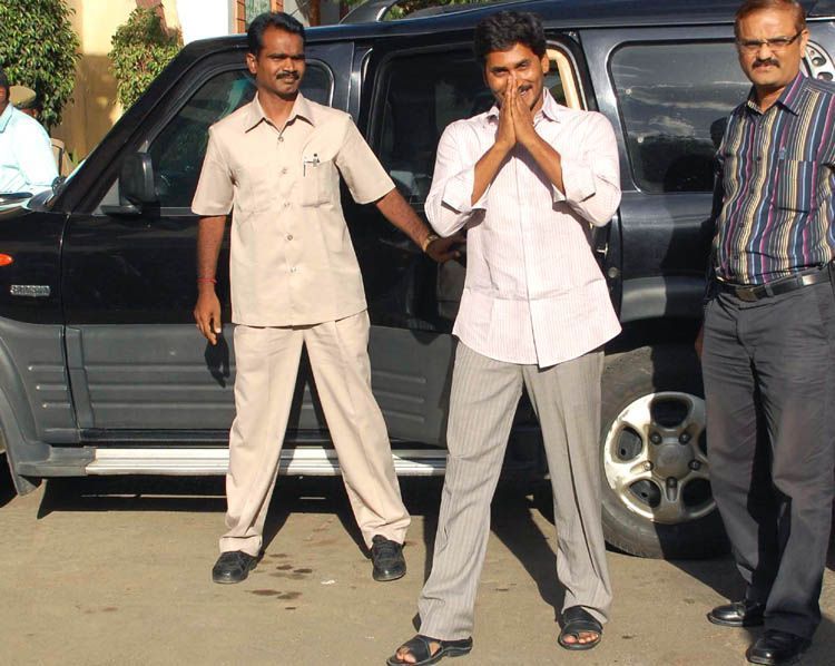 YSR Congress chief YS Jaganmohan Reddy greets the media with folded hands after he was brought back to Chanchalguda Jail at the end of five days of CBI custody here on Thursday - INN Photos