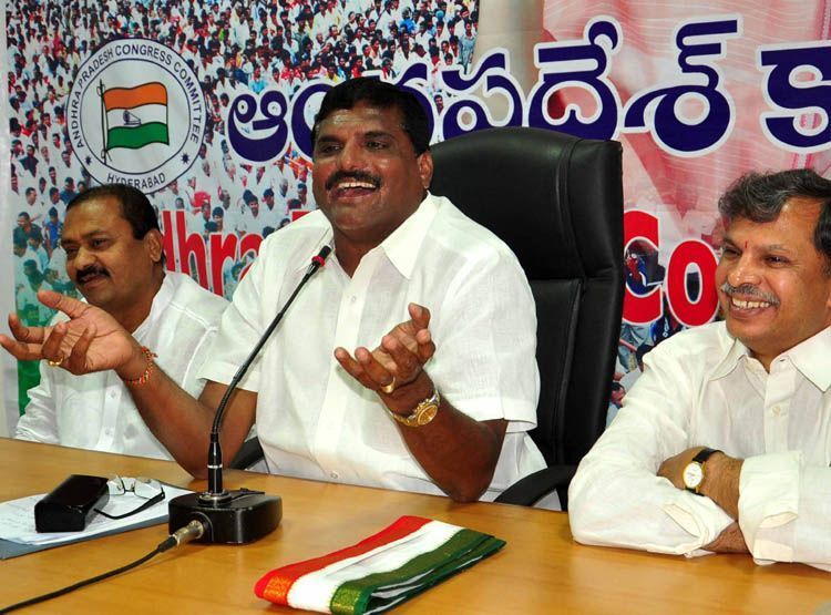 PCC president Botsa Satyanarayana addressing a press meet at Gandhi Bhavan here on Sunday - INN Photos