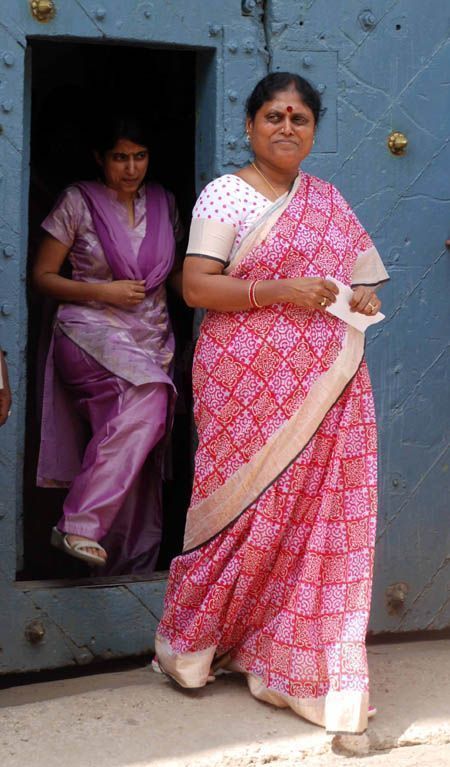 YS Jagan Mohan Reddy's mother Vijayamma and wife Bharati coming out of Chanchalguda Central Jail after meeting him on Friday - INN Photos