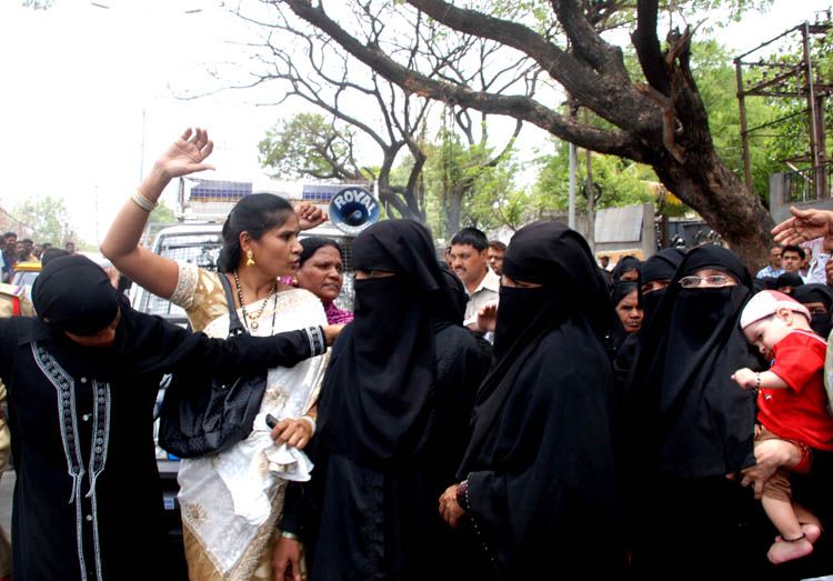 YSR Congress activists celebrate their party's victory on the streets of State capital here on Friday. Police prevented the activists from visiting the Chanchalguda Central Jail by erecting barricades - INN Photos