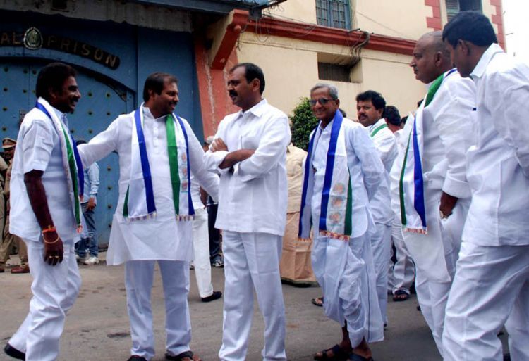 Newly elected YSR Congress party MLAs comes out of Chanchalguda Central Jail after meeting their party president YS Jaganmohan Reddy here on Saturday - INN Photos