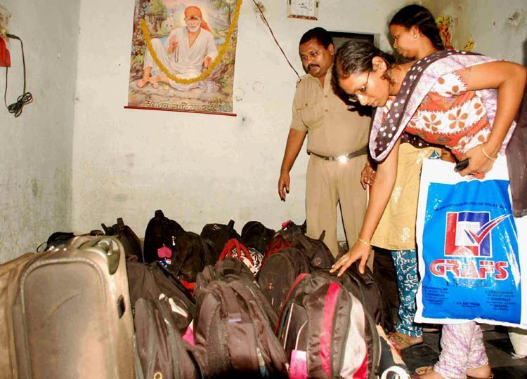 Passengers who were injured in Shirdi bus accident collect their luggage from Imlibun Bus Depot here on Sunday - INN Photos