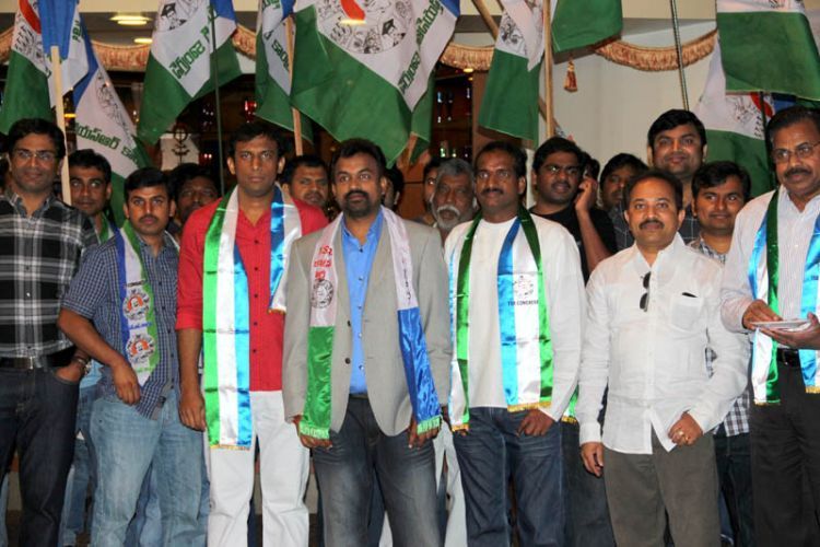 After the completion of the sky gala, about 300 YSfanclub members assembled at Bombay Tandoori Banquet hall in Torrance of Los Angeles. The celebrations have been kicked off with YSRCP colored cake cutting by YSfanclub president NandyalaVeerareddy, advisors Dharma Reddy Gummadi and Nagesh.