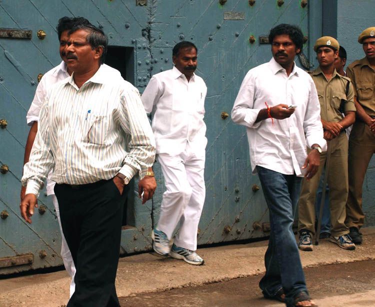 YSRCP leader Jupudi, Karntaka MLA and BSR Congress president B Sriramulu coming out of Chanchalguda Central Jail after meeting Kadapa MP YS Jaganmohan Reddy here on Tuesday - INN Photos