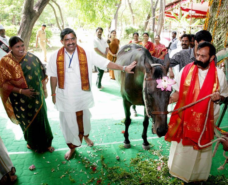 TTD Chairman Kanumuri Bapi Raju, board member Smt. P.Rajeswari along with TTD EO L.V.Subramanyam took part in the Kareeri Isthi Yagam, a special ritual to appease rain god, at Parveti Mandapam in Tirumala on Monday.
