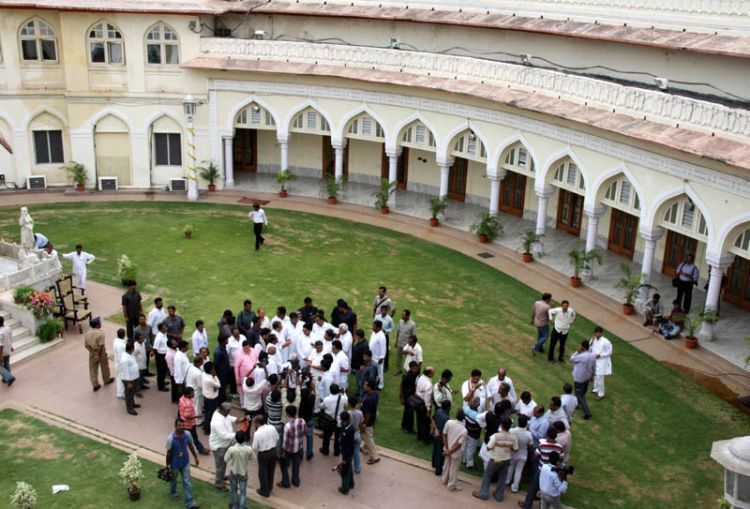 Fire broke out at Jubilee Hall here on Sunday soon after UPA's presidential nominee Pranab Mukherjee left the premises concluding his campaign - INN Photos