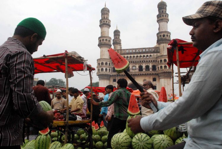Devotees purchase fruits near historic Mecca Masjid to break their first fast of holy month of Ramzan here on Saturday - INN Photos