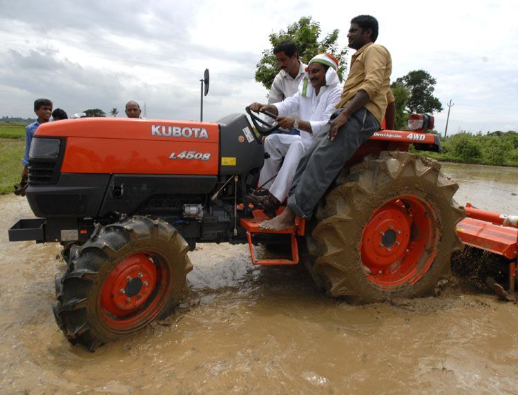 Chief Minister N.Kiran Kumar Reddy trying his hand on mechanical paddy plantation machine in a field at Seethampeta in Srikakulam district on Friday during his three day Indiramma Baata tour of the district.