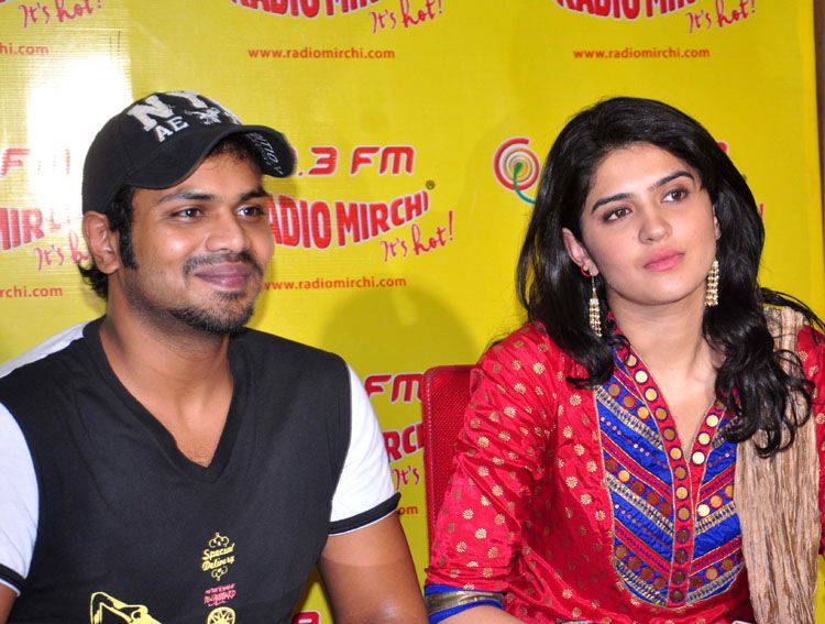 Manchu Manoj and Deeksha Seth sharing details of their just released 'Uu Kodatara? Ulikki Padatara? at Radio Mirchi studio on Tuesday.