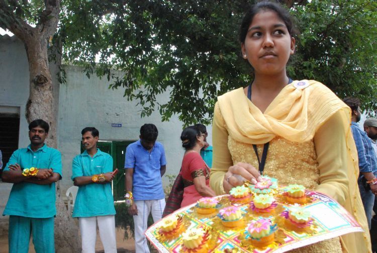 Students of St Francis College tie Rakhis to policemen and prisoners at Chanchalguda Central Prison on the occasion of Raksha Bandhan here on Thursday - INN Photos
