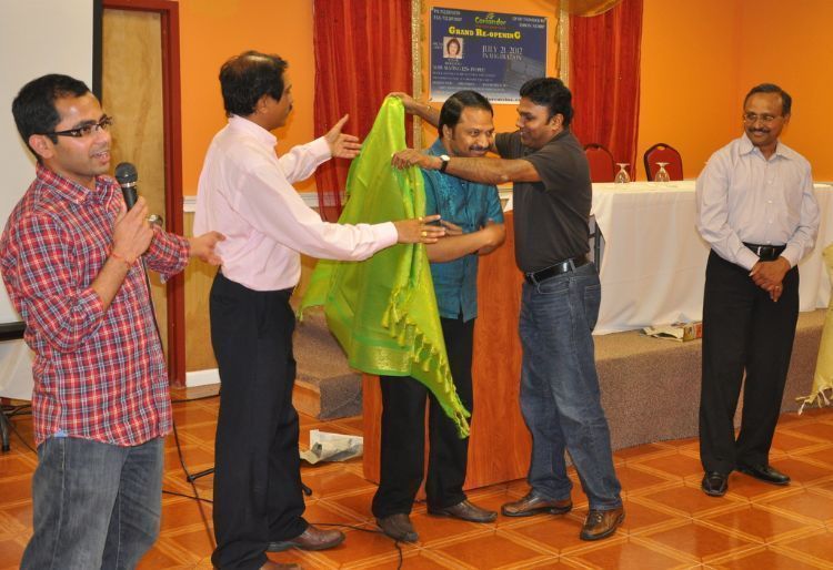 R. P. Patnaik, Tollywood Director and Music Director was felicitated by the Telugu community at Coriander restaurant's new Banquet Hall in Edison, New Jersey. He talked about his upcoming Hollywood movie Amy which was entirely produced using American crew by TP Entertainment Studios. He interacted with the local Telugu artists and offered to teach them, his techniques in making movies. For updates about Amy, visit: www.amymovie.com