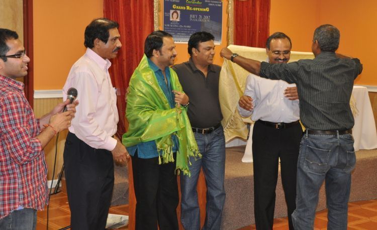 R. P. Patnaik, Tollywood Director and Music Director was felicitated by the Telugu community at Coriander restaurant's new Banquet Hall in Edison, New Jersey. He talked about his upcoming Hollywood movie Amy which was entirely produced using American crew by TP Entertainment Studios. He interacted with the local Telugu artists and offered to teach them, his techniques in making movies. For updates about Amy, visit: www.amymovie.com