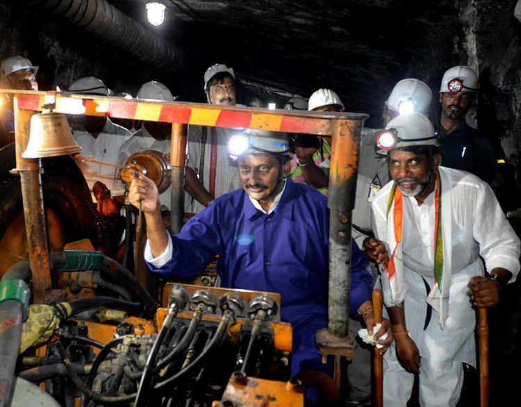 Chief Minister N.Kiran Kumar Reddy along with Dy. Speaker Mallu Bhatti Vikramarka visits Singareni Colleries Coal mines at Manuguru during Indiramma Baata programmed on Wednesday.