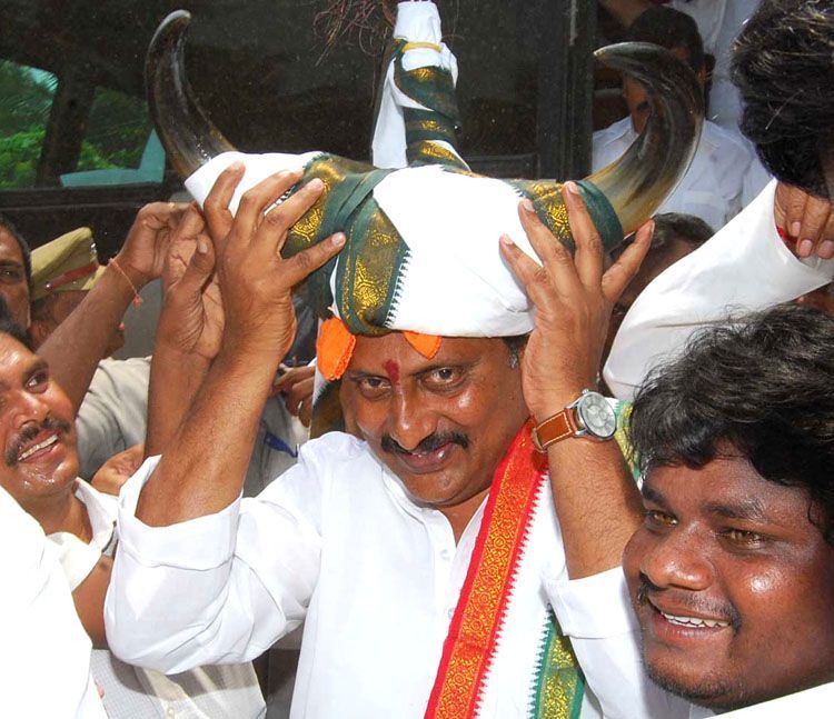 Chief Minister N.Kiran Kumar Reddy wearing a tribal head gear presented to him by villagers of Muddappagudem on Friday during his three day Indiramma Baata programme in West Godavari district.