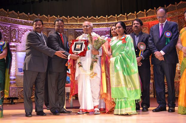Padma Vibhushan, Natasamrat Dr. Akkineni Nageswara Rao on his completion of 80 years of Acting was felicitated by the Telugu Literary and Cultural Association of Greater New York City area at the Hindu Temple Auditorium in Flushing, New York on August 18th. TLCA President Nagendra Gupta Veloor, well known Industrialist and Philanthropist Pailla Mallareddy, accomplished businessman and Ellis Island Medal of Honor recipient Rao Anumolu were seen in the picture.
