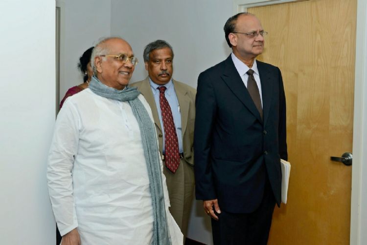 Rajarajeswari and Subba Rao Anumolu of ASR International Corporation, Hauppauge, NY ( www.asrintl.com ) honor the Telugu Cinema Legend, Dr. Akkineni Nageswara Rao and local dignitaries in Hauppauge, New York. Photocredit: Anand Chikine