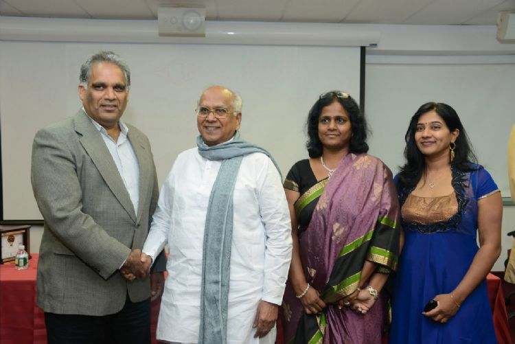 Rajarajeswari and Subba Rao Anumolu of ASR International Corporation, Hauppauge, NY ( www.asrintl.com ) honor the Telugu Cinema Legend, Dr. Akkineni Nageswara Rao and local dignitaries in Hauppauge, New York. Photocredit: Anand Chikine