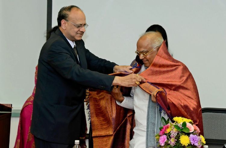 Rajarajeswari and Subba Rao Anumolu of ASR International Corporation, Hauppauge, NY ( www.asrintl.com ) honor the Telugu Cinema Legend, Dr. Akkineni Nageswara Rao and local dignitaries in Hauppauge, New York. Photocredit: Anand Chikine