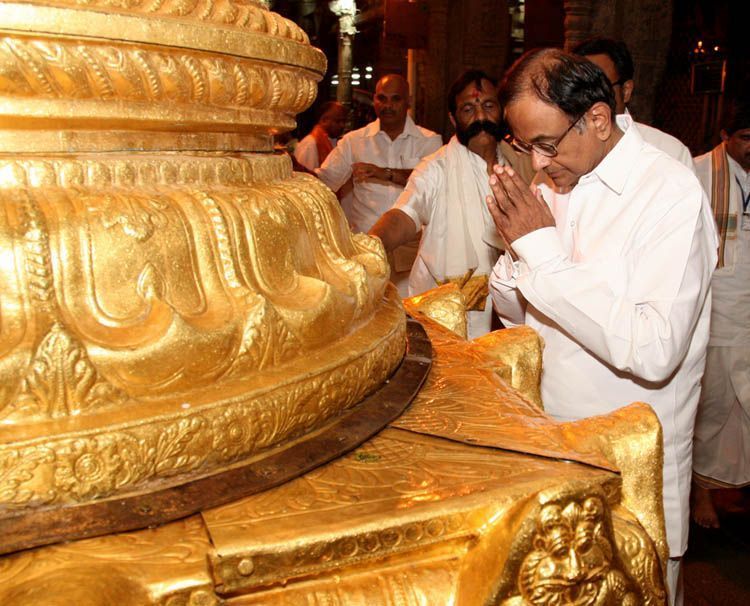 Union Minister for Finance P.Chidambaram accompanied by his family members offered prayers to Lord Venkateswara on Thursday evening.