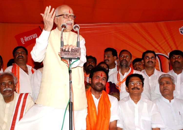 Senior BJP leader LK Advani speaking after conclusion of three day fast held by BJP State secretary Kishna Reddy over Telangana issue at the Jantar Mantar in New Delhi on Wednesday.