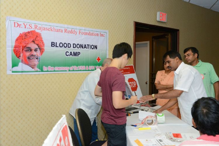 Dr. Y.S. Rajasekhara Reddy Foundation organized a Blood Donation Drive through American Red Cross on September 8th, 2012 at King of Prussia, Pennsylvania. This event was held in commemoration of Dr. Y.S. Rajasekhara Reddy's 3rd Vardhanthi and the 11th anniversary of the 9/11 victims. More than 100 YSR fans and local Americans donated blood to save lives. Photocredit: Shivakumar Chikine