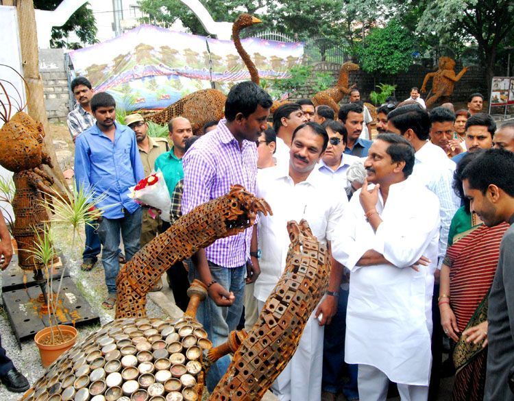 Chief Minister N.Kiran Kumar Reddy visiting the sculpture in metal exhibition at JNTU College of Fine Arts, Masab Tank here on Wednesday.