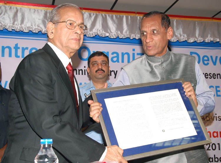 Governor ESL Narasimhan confers the prestigious ‘V. Krishnamurthy Award for Excellence’ award on Metro Man Dr. Sreedharan at a function held in Centre for Organisation Development here on Friday.