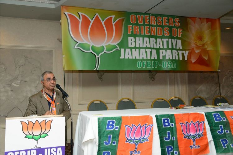 Overseas Friends of BJP's Nationcal Council Meeting was held in North Brunswick, NJ from September 14th to 16th. Attendees include Shri Ram Lal Gupta, National General Secretary (Org), BJP, Shri Vijay Jolly, Overseas Convener of the foreign affairs cell, BJP and Gajendra Solanki, Co-convenor, Cultural Cell, BJP. Photocredit: Shivakumar Chikine