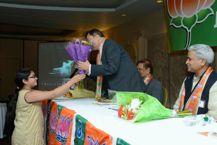 Overseas Friends of BJP's Nationcal Council Meeting was held in North Brunswick, NJ from September 14th to 16th. Attendees include Shri Ram Lal Gupta, National General Secretary (Org), BJP, Shri Vijay Jolly, Overseas Convener of the foreign affairs cell, BJP and Gajendra Solanki, Co-convenor, Cultural Cell, BJP. Photocredit: Shivakumar Chikine
